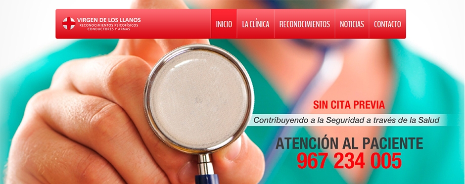 Se trata de una web corporativa que pretende informar a los usuarios sobre los distintos servicios y especialidades ofrecidos desde la Clínica Virgen de Los Llanos, así como los múltiples y diferentes reconocimientos psicofísicos que se dispensan como Centro de Reconocimientos Médicos de referencia en Albacete (conductores, licencias de armas, vigilantes de seguridad, posesión de animales peligrosos, operador de grúa, patrón de embarcaciones, buceo y pesca submarina).